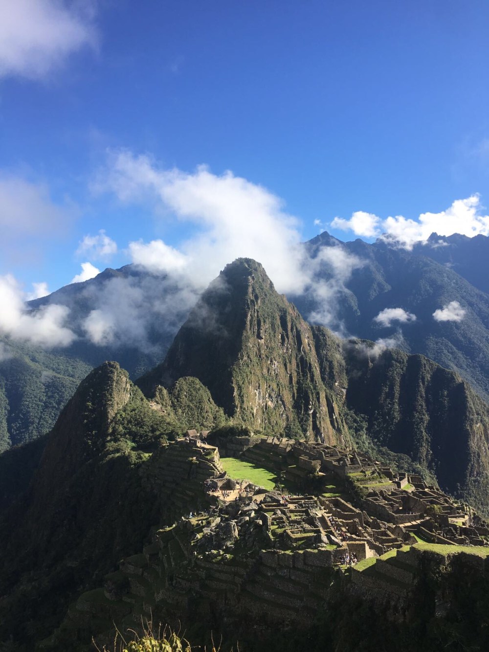 Nous attendons puis viens le moment où nous pouvons commencer à marcher. Alléluia, nous commencions à geler! Une heure plus tard nous arrivons au sungate, tous fatigués mais fières de nous. Nous sommes super chanceux parce que le ciel se dégage 5 minutes après notre arrivée pour nous permettre de voir le Machu! Nous avons atteint notre but après trois jours de marche assez intenses et ca en valait la peine! Je suis vraiment fatiguée et émue et très étonnant de ma part, (alerte ironie) je me mets à pleurer.