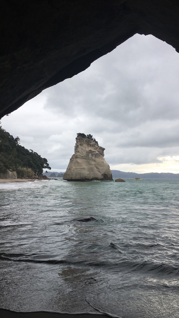 L’après-midi nous reprenons la route pour aller à Whitianga d’où nous visiterons notamment Cathedral Cove. La moitié du trajet se fait dans le noir. La nuit tombe vraiment tôt à cette période de l’année. (17h30) Nous sommes bien contentes d’arriver à destination après avoir fait les 25 derniers kilomètres sur un chemin non goudronné au milieu de la forêt, sans y avoir croisé âme qui vive.