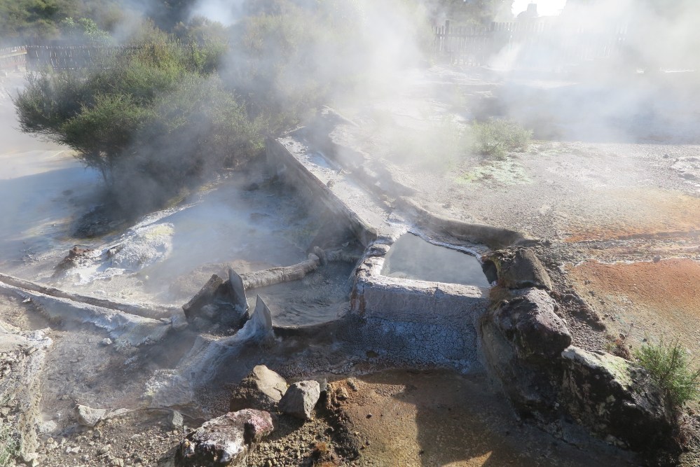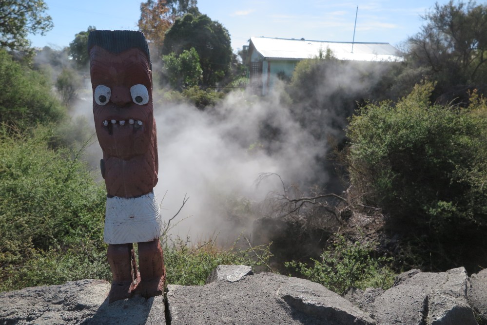 Le lendemain de notre arrivée, nous sommes debout assez tôt pour pouvoir faire le premier tour guidé de la journée au village maori. Nous ne sommes que quatre dans le groupe, et nous avons la chance d’avoir un guide qui a lui même grandi dans le village. Il nous raconte plusieurs anecdotes sur son enfance et nous explique les habitudes des habitants. Ils profitent de l’activité géothermique pour cuire leur légumes, pour réchauffer leurs plats ou encore pour prendre des bains chauds.